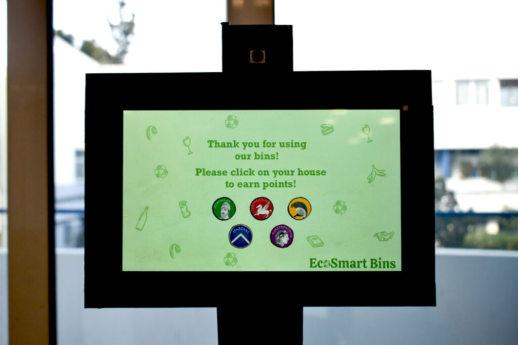 - Gamifying SustainabilityTo boost engagement, the team designed a house-point system. After recycling, the student selects his/her house, earning points toward an ongoing sustainability competition.